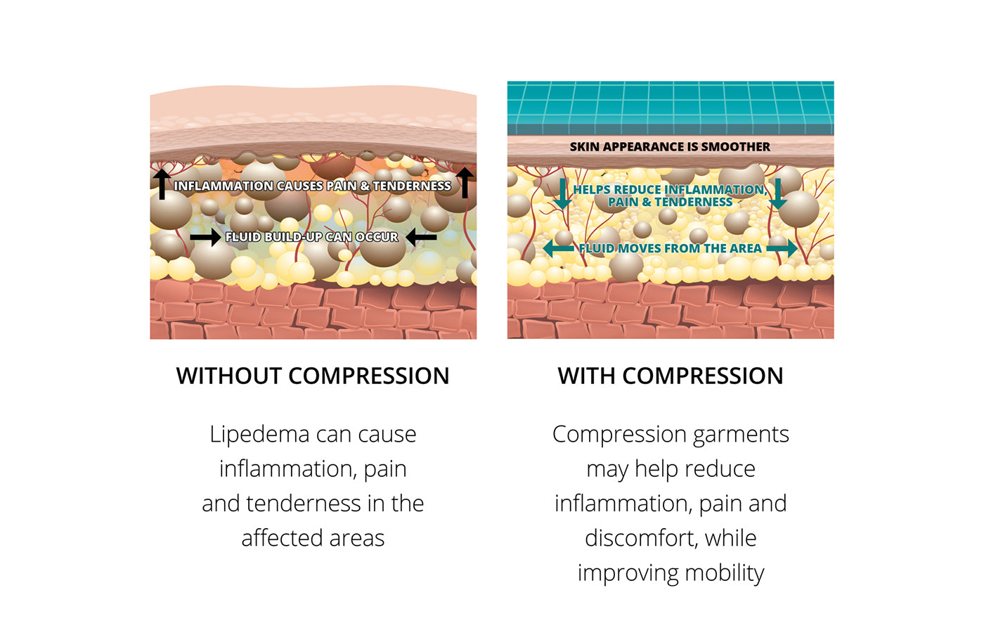 COMPRESSION HAS BEEN SHOWN TO HELP EARLY & MID DISEASE STATE LIPEDEMA: